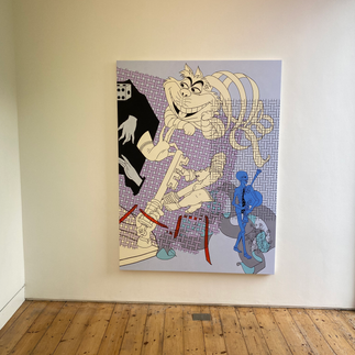 This week I visited the approach for the first time where you can admire Caitlin Keogh's paintings and collage works until the 17th of December. I enjoyed it immensely. I felt like I was in the middle of a never-ending story. Where the line ends in one image, it begins in the other. The cartoon style of the artist and the colours she used looked fantastic on the white walls above the beautiful wooden floor. The light was also wonderful! I highly recommend it.