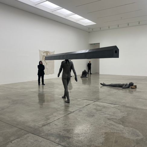 The worst thing was that… there was nothing to look at. Metal figures without faces, fingers, or distinguishing features occupied the space alongside an oddly placed textile piece. Details were impossible to discern from my enforced distance. Each step closer risked provoking the guards' silent reprimands. Yet, just as I submitted to the silent authority and headed for the exit, I noticed one metal figure provocatively exposing its testicles like a perverse reward for enduring the oppressive emptiness.